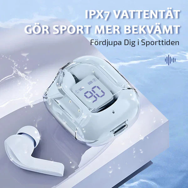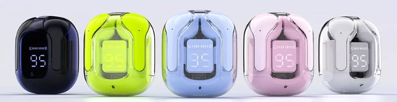 • [Digital LED display and colorful design] Accurate LED display of the power of the charging case and both earbuds, so you can know the power status of the wireless earbuds and charging case at any time. This series of Bluetooth earphones with transparent charging case, futuristic structure, 5 different colors. The waterproof earbuds can effectively prevent splash damage caused by sweat and raindrops.